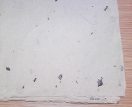 では本来「茶ちり」とはと、高知県手すき和紙協同組合・小津・わがみ堂に聞いてみると元々は漉き工程最後あたりに取りきれなかったチリの沈澱した原料を使って漉いた紙なのだそうですよ。売り物にするには抵抗のある紙。