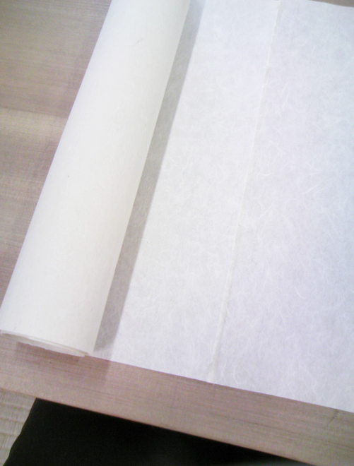 そんで乾く間に厚手の楮紙を半切にして棒接ぎします。